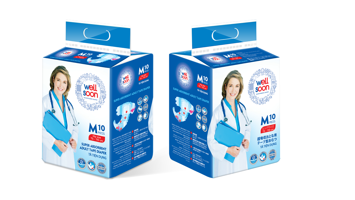 WELLSOON - это подгузники для взрослых в форме ленточных вкладышей с максимальной впитывающей способностью, способствующие непрерывному сну. Это предпочтительный подгузник для взрослых для тех, кто нуждается в одноразовом продукте с высокой впитывающей способностью для взрослых, страдающих недержанием, или кому может быть нужен помощник, помогающий сменить подгузник для взрослых. Этот продукт отлично подходит при недержании мочи.