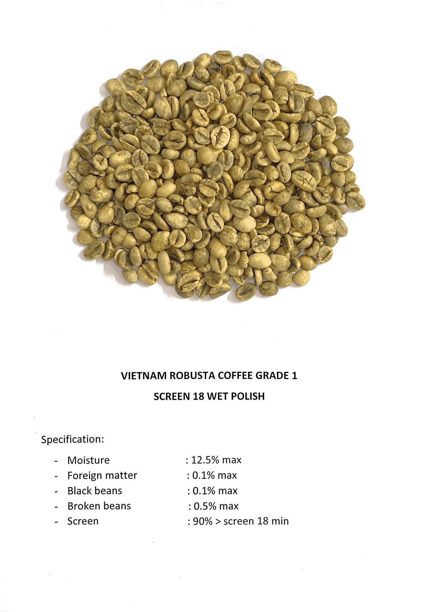 Humidité: 12,5% maxMatières étrangères: 0,1% maxGrains noirs: 0,1% maxGrains cassés: 0,5% maximumCrible: 90%> crible 18 min